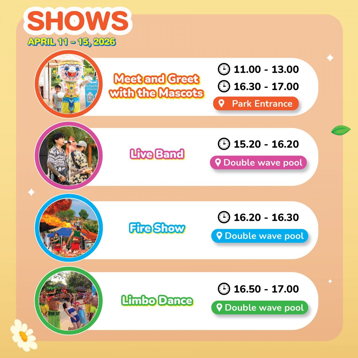 • Meet & Greet กับขบวนมาสคอตสุดน่ารัก บริเวณทางเข้าสวนน้ำ
