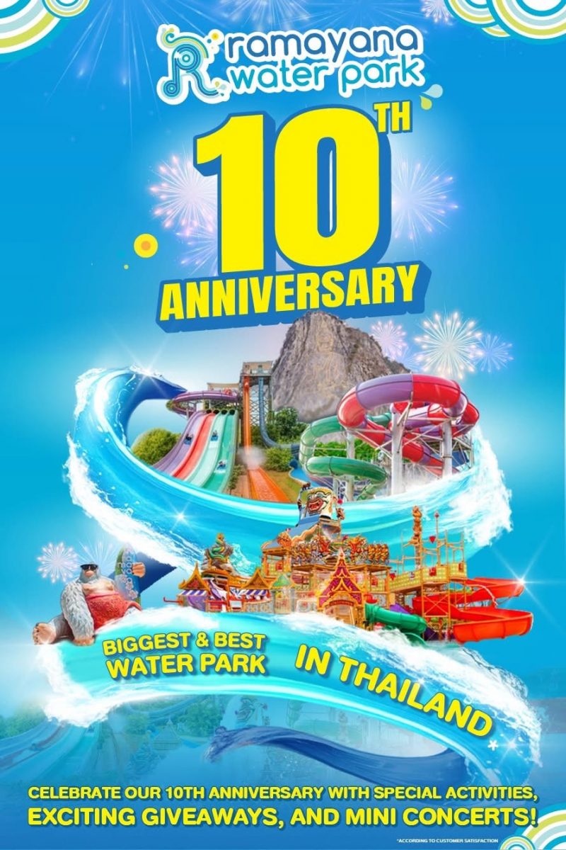พร้อมฉลองครบรอบ 10 ปี สวนน้ำรามายณะ กับมินิคอนเสิร์ตและกิจกรรมสุดพิเศษตลอดเดือนพฤษภาคม 2569 นอกจากความสนุกในช่วงสงกรานต์แล้ว สวนน้ำรามายณะ พัทยา ยังเตรียมเซอร์ไพรส์ครั้งใหญ่ ฉลองครบรอบ 10 ปี กับกิจกรรมสุดเอ็กซ์คลูซีฟและมินิคอนเสิร์ตจากศิลปินชื่อดัง ตลอดช่วงวันหยุดยาวต้นเดือนพฤษภาคม 2568