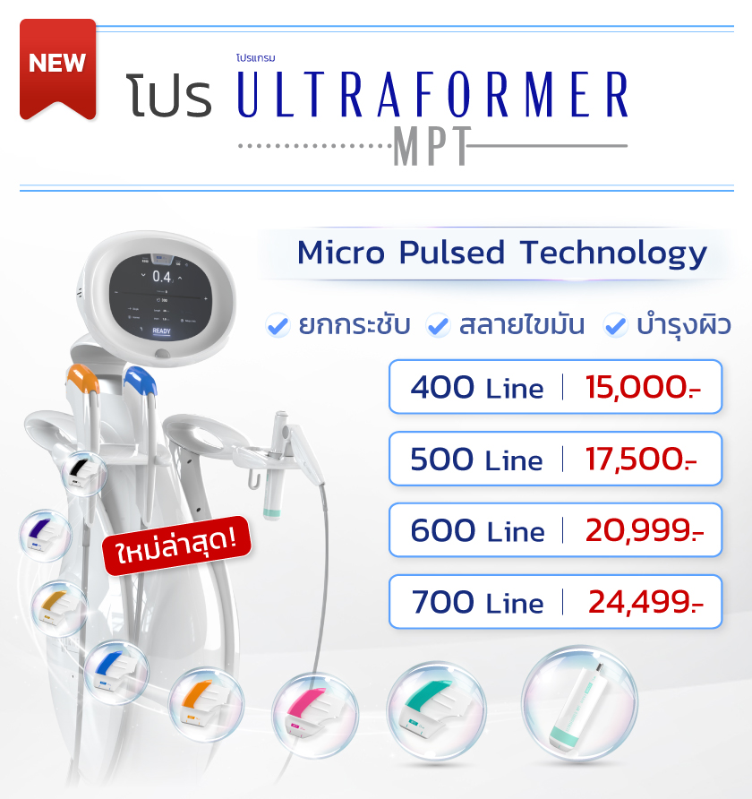 Ultraformer MPT คือเครื่อง Hifu รุ่นใหม่ที่พัฒนาต่อยอดจากรุ่นเดิม โดยอัปเกรดหัวยิงให้ครอบคลุมพื้นที่ได้กว้างขึ้น ช่วยให้การยิงพลังงานแม่นยำขึ้น และผลลัพธ์ดูเป็นธรรมชาติมากขึ้น ขณะเดียวกันราคาก็จะสูงกว่า Ultraformer III เล็กน้อย
