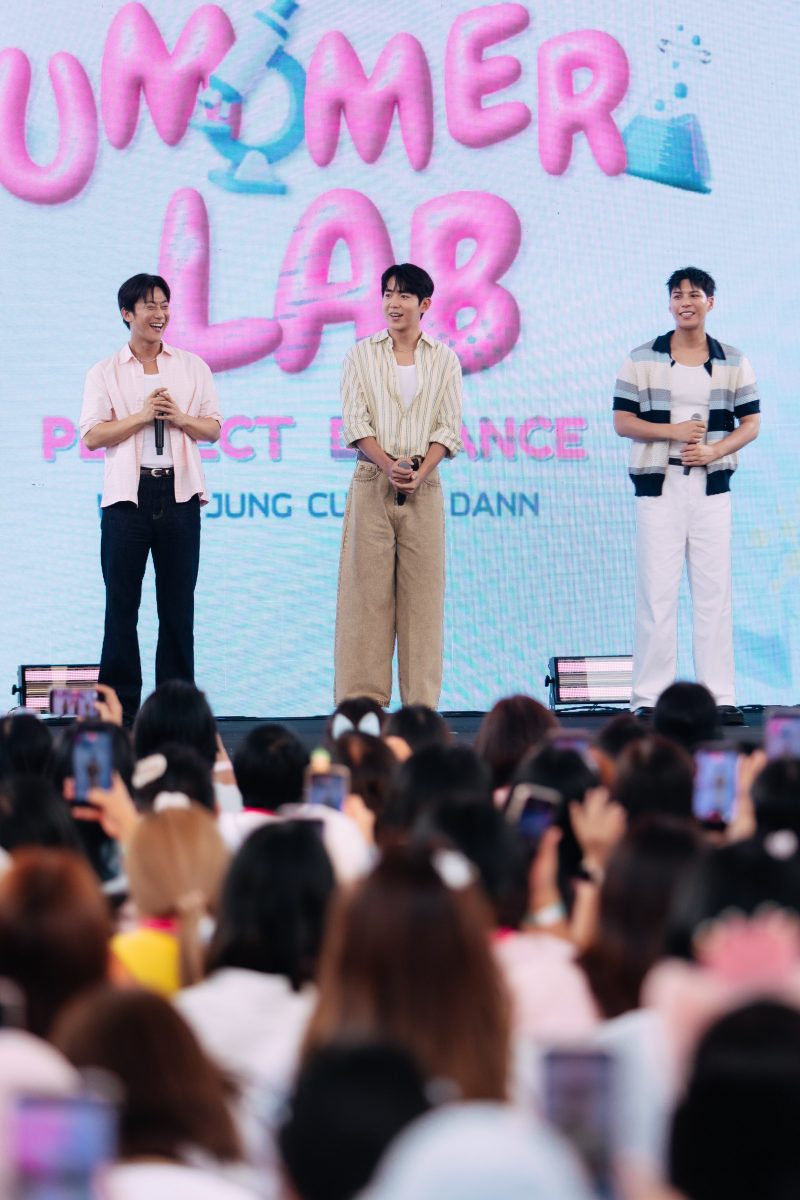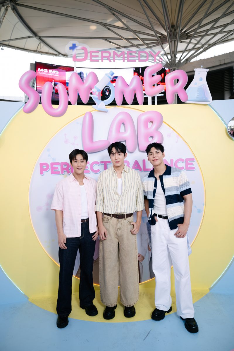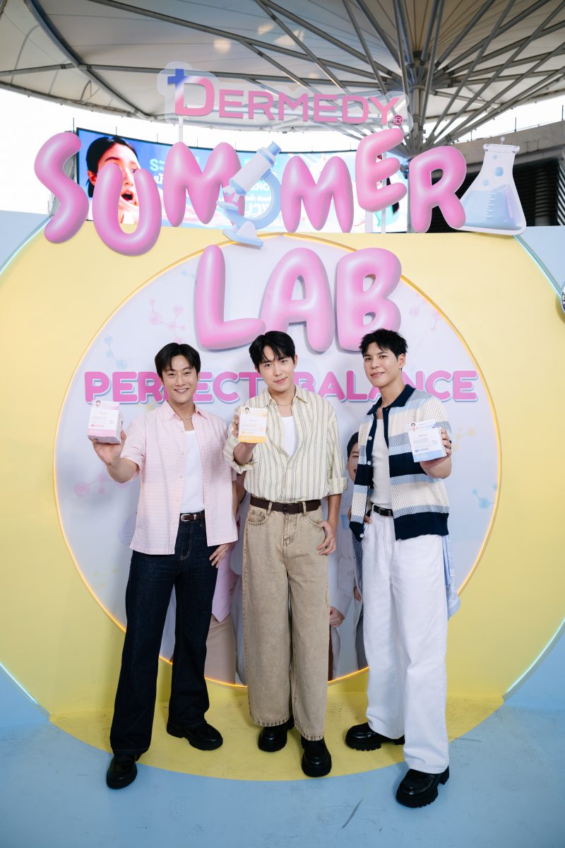 ไฮไลท์ของงานครั้งนี้ คือช่วง DERMEDY SUMMER LAB: PERFECT BALANCE with P’Jung Cullen Dann เมื่อ 3 หนุ่มพรีเซนเตอร์อย่าง พี่จอง, คัลแลน และแดน ปรากฏตัวและเดินเข้าสู่พื้นที่กิจกรรม ท่ามกลางเสียงต้อนรับจากแฟนๆ สร้างบรรยากาศอบอุ่นและคึกคักภายในงาน ก่อนจะร่วมพูดคุยและแชร์ประสบการณ์การใช้ผลิตภัณฑ์ DERMEDY pH BALANCE TONER PAD ทั้งในด้านการดูแลผิวและความรู้สึกหลังการใช้งานจริง พร้อมร่วมสร้างรอยยิ้มและโมเมนต์พิเศษกับผู้เข้าร่วมงานได้ใจฟูกันอย่างใกล้ชิด