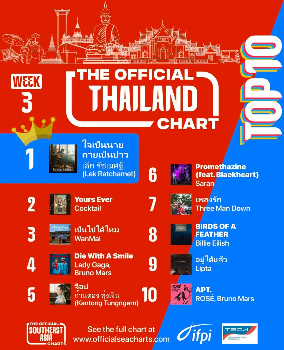 “The Official Thailand Chart” ชาร์ตที่รวบรวมข้อมูลจากทุกแพลตฟอร์มหลักที่ให้บริการสตรีมมิ่งดนตรีในประเทศไทย อาทิ Apple Music, Deezer, Spotify และ YouTube ด้วยความมุ่งมั่นที่จะเป็นชาร์ตจัดอันดับเพลงชั้นแนวหน้าของภูมิภาคด้วยความเป็นกลาง และมีการทำงานที่สร้างสรรค์และแปลกใหม่ในวงการดนตรีบ้านเรา โดย “The Official Thailand Chart” ได้เปลี่ยนชื่อมาจาก TECA CHART เกิดขึ้นโดย IFPI หน่วยงานผู้ดูแลลิขสิทธิ์สิ่งบันทึกเสียงในระดับสากล ร่วมกับ TECA สมาคมการค้าผู้ประกอบธุรกิจบันเทิงไทย เพื่อสนับสนุนอุตสาหกรรมเพลงในประเทศ
