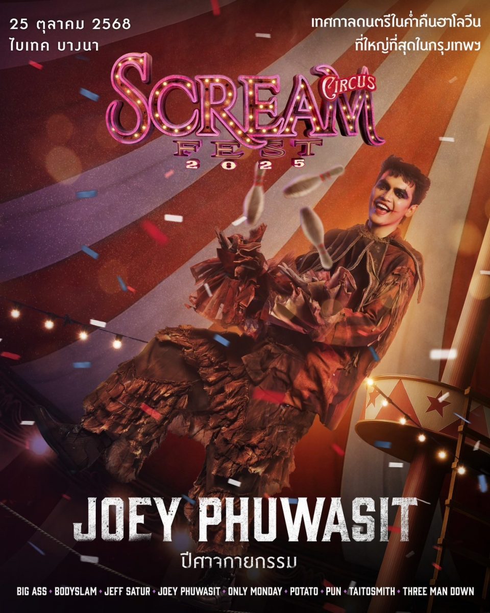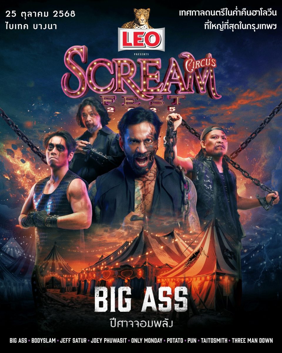 จากค่ำคืนฮาโลวีนสุดสยอง กำลังจะกลายเป็นค่ำคืนแห่งความหลอนสุดมัน กับงาน LEO PRESENTS SCREAM FEST 2025 เทศกาลดนตรีในค่ำคืนฮาโลวีนที่ใหญ่ที่สุดในกรุงเทพฯ ที่จะจัดขึ้นใน วันเสาร์ที่ 25 ตุลาคมนี้ ที่ BITEC BANGNA HALL 98-100 งานนี้ผู้จัดงาน Idea Fact ภายใต้ GMM SHOW ได้เปลี่ยนไบเทคฮอลล์ให้กลายเป็น “SCREAM CIRCUS สวนสนุกร้าง ตำนานหลอน” โดยตั้งใจให้เหล่าคนที่ชอบลองดี ได้เข้ามารับประสบการณ์ชมเทศกาลดนตรีที่แตกต่างจากงานอื่นโดยสิ้นเชิง เริ่มจากที่สุดของ Line up ที่ทุกคนต้องกรีดร้อง “BODYSLAM, BIG ASS, ONLY MONDAY, THREE MAN DOWN, JOEY PHUWASIT, TAITOSMITH, POTATO, JEFF SATUR, PUN” มาสวมบทปีศาจที่เคยอยู่ในสวนสนุกร้างแห่งนี้ กำลังถูกปลุกให้ฟื้นคืนชีพ และกลับมาโลดแล่นบนเวที สร้างความหลอนสุดมัน พร้อมด้วยเอฟเฟคแต่งหน้าและแต่งตัวตามธีมงานแบบที่ไม่เคยเกิดขึ้นที่ไหนมาก่อน โดย BODYSLAM รับบท ผู้คุมวิญญาณ,BIG ASS รับบท ปีศาจจอมพลัง,ONLY MONDAY รับบท ปีศาจตัวตลก,THREE MAN DOWN รับบท ปีศาจเวทมนตร์,JOEY PHUWASIT รับบท ปีศาจกายกรรม, TAITOSMITH รับบท ปีศาจควบคุมวิญญาณสัตว์,POTATO รับบท ปีศาจมีด,JEFF SATUR รับบท ปีศาจไฟ,PUN รับบท ปีศาจหุ่นเชิด” นอกจากจะได้เห็นศิลปินทำในสิ่งที่ไม่เคยทำมาก่อน ด้านโปรดักชั่นเตรียมตัวพบกับความหลอนที่มันที่สุดแบบจัดหนัก จัดเต็ม ทั้งงานออกแบบดีไซน์ งานโปรดักชั่น แสง สี เสียง ให้เป็นคืนแห่งความสนุก เหนือจินตนาการ เหมือนหลุดเข้าไปในสวนสนุกร้างที่เต็มไปด้วยตำนานหลอนแต่ถ่ายรูปได้ทุกมุม!! เท่านั้นยังไม่พอมีกิจกรรมเอาใจสายแฟชั่น MAKEUP STATION ให้ได้ฟินิชลุคในธีมสวนสนุกร้าง รวมไปถึงกิจกรรมสุดหลอนอีกมากมายรอทุกคนอยู่ และที่สำคัญเดินทางสะดวก สามารถเดินทางมาปลดปล่อยตัวเอง ให้เป็นคืนเดียวของปีที่สนุกได้แบบปล่อยผี!!