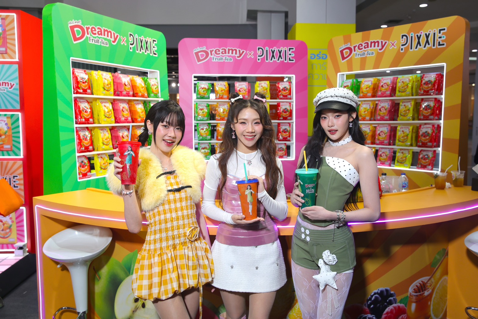 ในงานเปิดตัว “Dreamy Fruit Tea : Fruit Fun Fresh” ที่จัดขึ้นเมื่อวันที่ 24 ตุลาคม 2568 ณ ศูนย์การค้ายูเนี่ยน มอลล์ บริษัทฯ ได้รับเกียรติจากศิลปินเกิร์ลกรุ๊ปสุดฮอต “PiXXiE” — มาเบล, พิมมา และอิงโกะ — มารับหน้าที่ พรีเซนเตอร์ พร้อมมินิคอนเสิร์ตสุดพิเศษที่สร้างสีสันและพลังสดชื่นให้กับผู้ร่วมงาน นอกจากนี้ยังมีโชว์สุดประทับใจจากบาร์เทนเดอร์มืออาชีพ และดีเจนุ้ย ธนวัฒน์ ประสิทธิสมพร มาร่วมสร้างความสนุกอย่างคับคั่ง