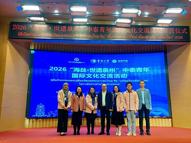 ท่ามกลางเสียงเพลง 《友谊地久天长》 การแลกเปลี่ยนวัฒนธรรมเยาวชนนานาชาติ “2026 เส้นทางสายไหมทางทะเล · มรดกโลกเฉวียนโจว” ระหว่างจีน–ไทย ได้ปิดฉากลงเมื่อวันที่ 15 มีนาคม ณ เมืองเฉวียนโจว มณฑลฝูเจี้ยน กิจกรรมครั้งนี้จัดโดยมหาวิทยาลัยหัวเฉียว โดยมีวิทยาลัยการท่องเที่ยวและสำนักงานความร่วมมือและแลกเปลี่ยนระหว่างประเทศร่วมกันเป็นผู้ดำเนินงาน