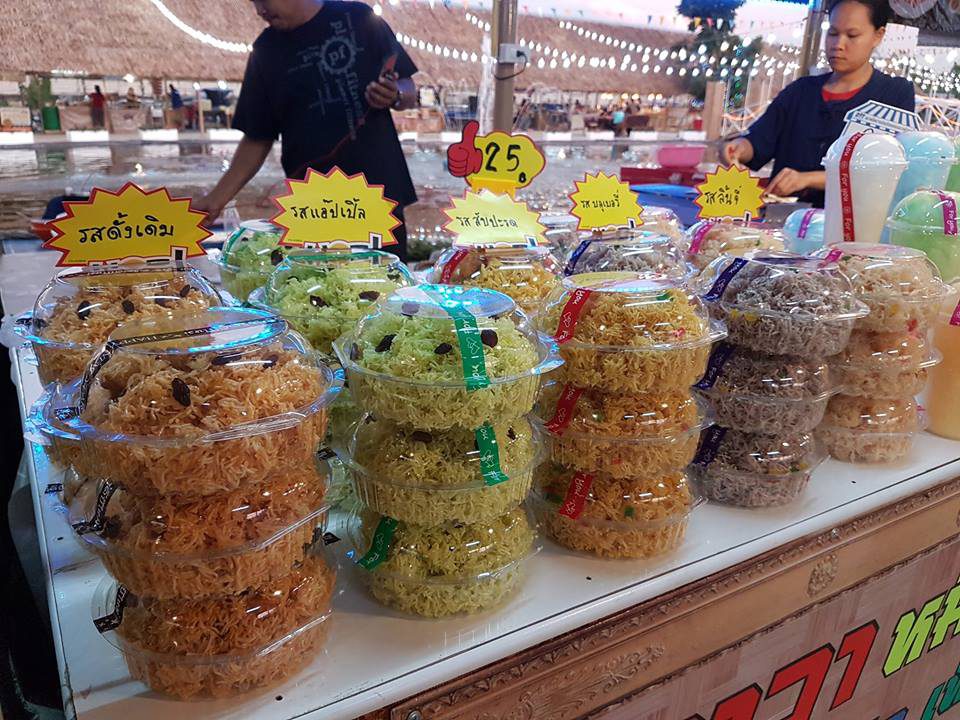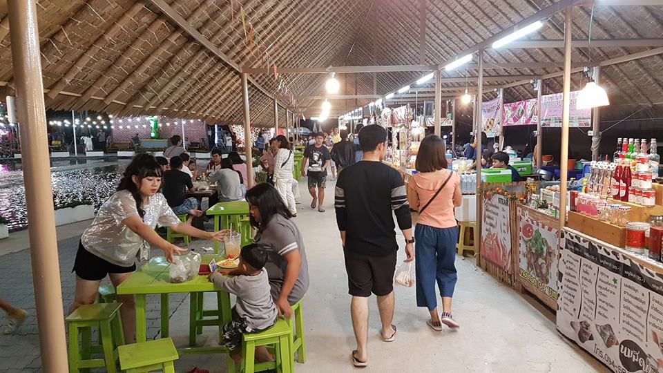 ทุกวันหยุดเสาร์ อาทิตย์ และวันหยุดนักขัตฤกษ์ พ่อค้าแม่ค้าจะรวมตัวกันนำอาหารหลากหลายอย่างมาวางจำหน่าย เช่น หมี่กรอบโบราณ, ส้มตำ, ไก่ย่าง, กุ๋ยช่าย, ลูกชุบ, เฉาก๊วยนมสด, สาคูปากหม้อ, ป๊อบคอร์น, ไส้กรอกปลาแนม, เกี๊ยวซ่า, ทาโกะยากิ, ปลากิมไข่เต่า, ไอศกรีม รวมถึงเครื่องดื่มเย็นชื่นใจ