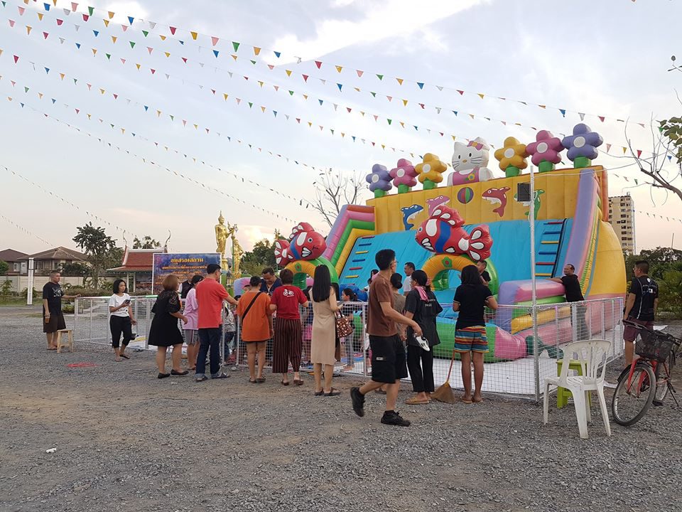 นอกจากของกินอร่อย ๆ ถูกปากแล้ว ยังมีบ้านบอลเป่าลมให้เด็ก ๆ เล่นสนุกสนานอีกด้วย ส่วนตอนกลางคืนจะเปิดไฟ LED สว่างไสว สวยงามและดูน่าเดินสุด ๆ