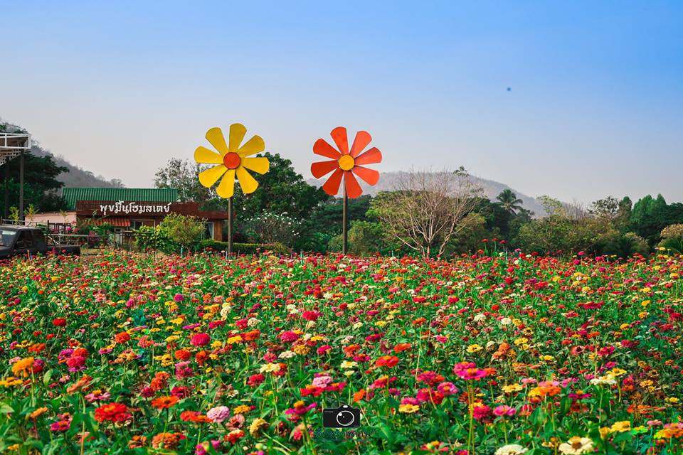 นอกจากทุ่งดอกบานชื่นทั้งสีแดง เหลือง ขาว ม่วง ยังมีทุ่งดอกดาวกระจาย ดอกคอสมอส และดอกทานตะวัน แข่งกันชูช่อประชันความสวยงาม