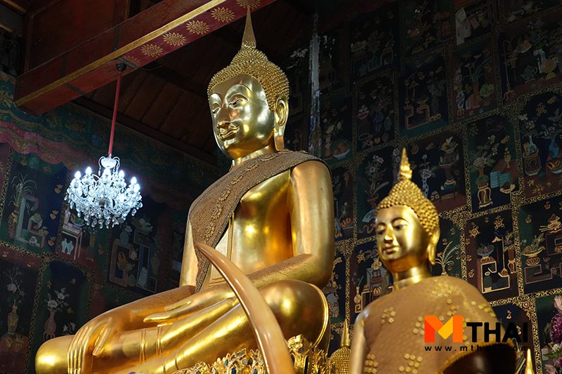 ในพระอุโบสถวัดพนัญเชิงนั้น ประดิษฐานพระพุทธรูปสำคัญ 3 องค์ คือพระพุทธรูปทองคำ พระพุทธรูปปูน และพระพุทธรูปนาค พระพุทธรูปทองเป็นพระพุทธรูปสมัยสุโขทัยทำจากทองสัมฤทธิ์ หน้าตักกว้าง 3 ศอก สูง 4 ศอก มีสีทองอร่ามใสเป็นเงาสะท้อนอย่างชัดเจน องค์กลางเป็นพระพุทธรูปปูนปั้นสมัยอยุธยาหน้าตักกว้าง 4 ศอก สูง 5 ศอก ส่วนพระพุทธรูปนาคเป็นพระพุทธรูปสมัยสุโขทัยนั้นจะมีสีออกแดงๆ หน้าตักกว้าง 3 ศอก สูง 5 ศอก