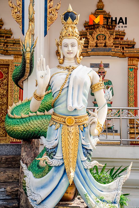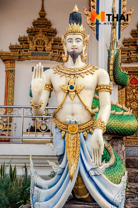 รูปปั้นพระอินทราชถือเศียรพระพุทธรูป ณ ซุ้มประตูทางเข้า