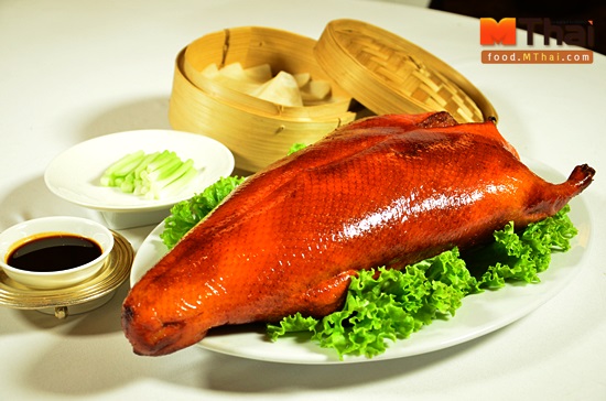 อาหารแต่ละชนิดบนโต๊ะจีนมักมีความหมายมงคลแฝงอยู่ เช่น เป็ดปักกิ่ง หมายถึงความเจริญรุ่งเรือง หมูหันบางๆ หมายถึงความโชคดีและกุ้งหมายถึงความร่ำรวย เป็นต้น