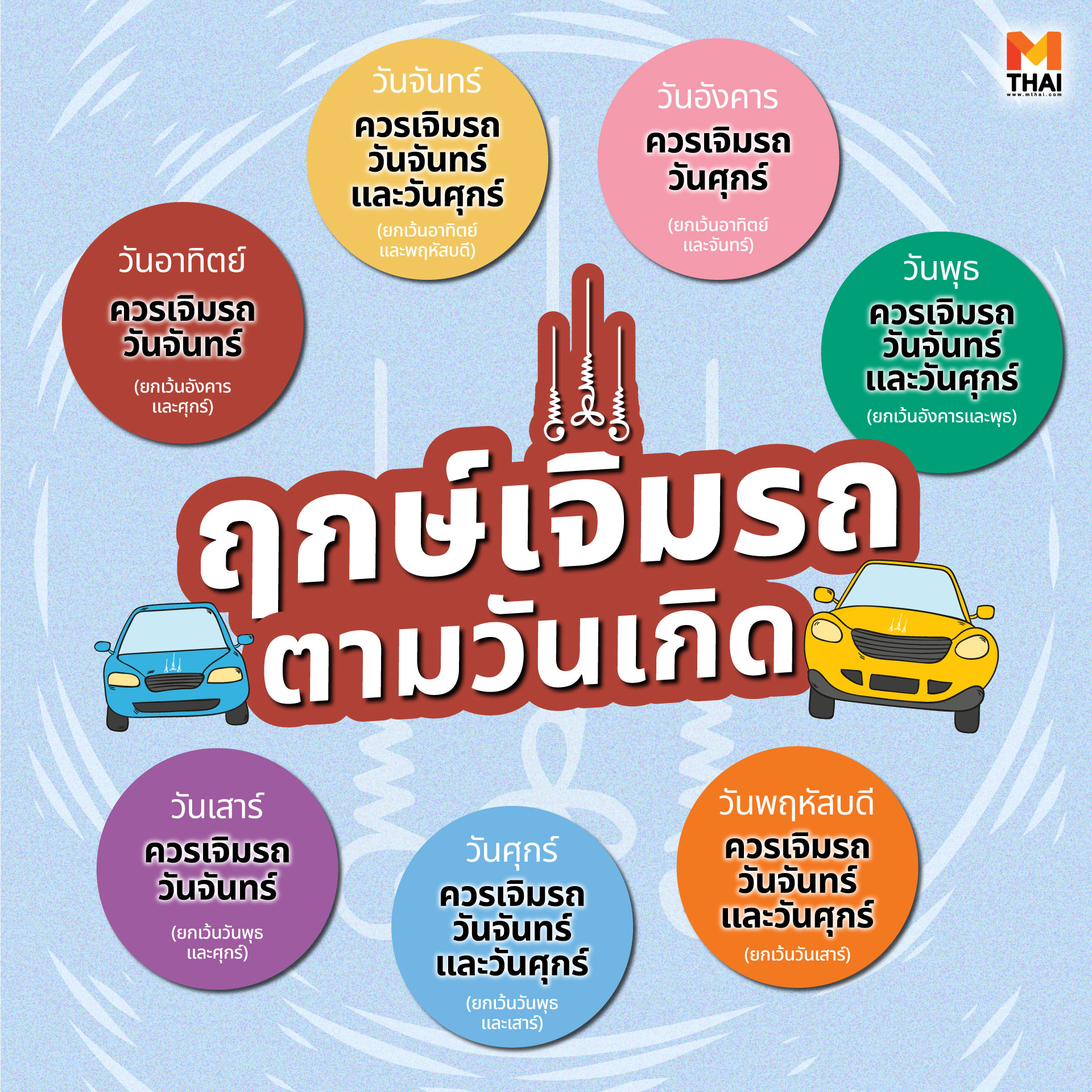 การเจิมรถเพื่อเสริมสิริมงคล ให้ขับขี่เดินทางปลอดภัย แคล้วคลาดและราบรื่นตลอดการเดินทาง ซึ่งการ เจิมรถต้องใช้อะไรบ้าง เจิมรถเวลาไหนดี MTHAI เรามีคำตอบให้ค่ะ